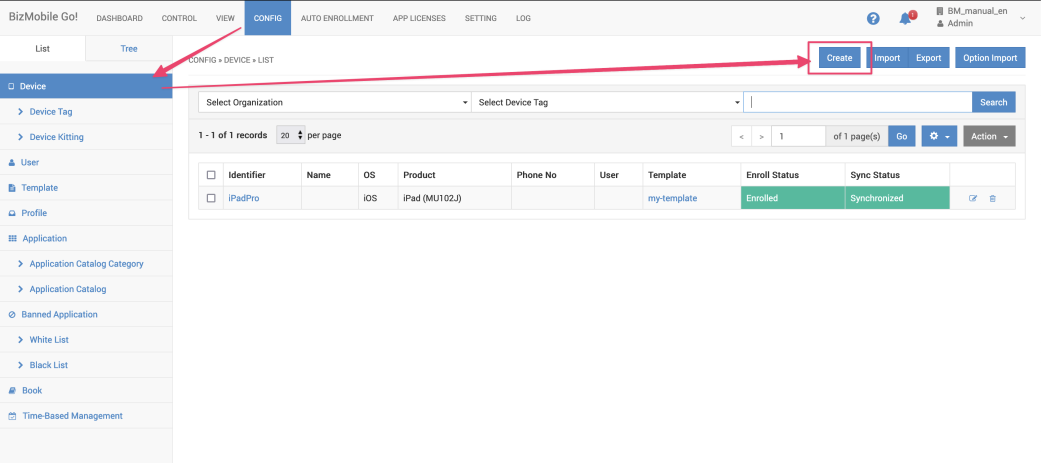- In the administration panel, if creating a new device, select "Configuration" > "Devices" and click