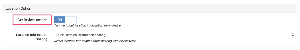 - In the expanded device creation (edit) screen, enable "Location Information Retrieval" under "Location