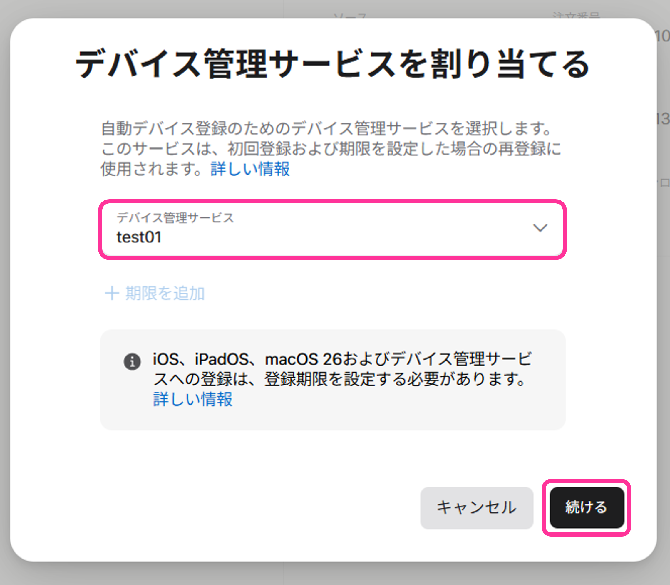 上記手順を全て確認いただいた後で、次の手順に進んでください。→ ADE(旧DEP)デバイスのチェックインを行う