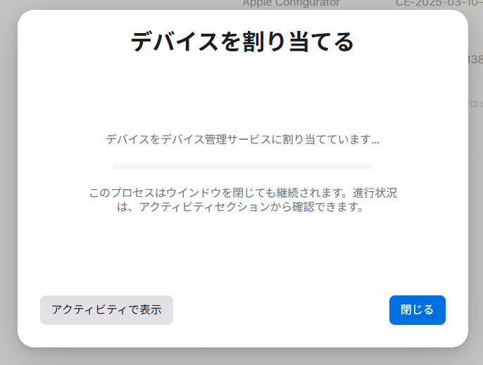 assigning:ADEデバイスへのADEプロファイル割り当て処理が進行中