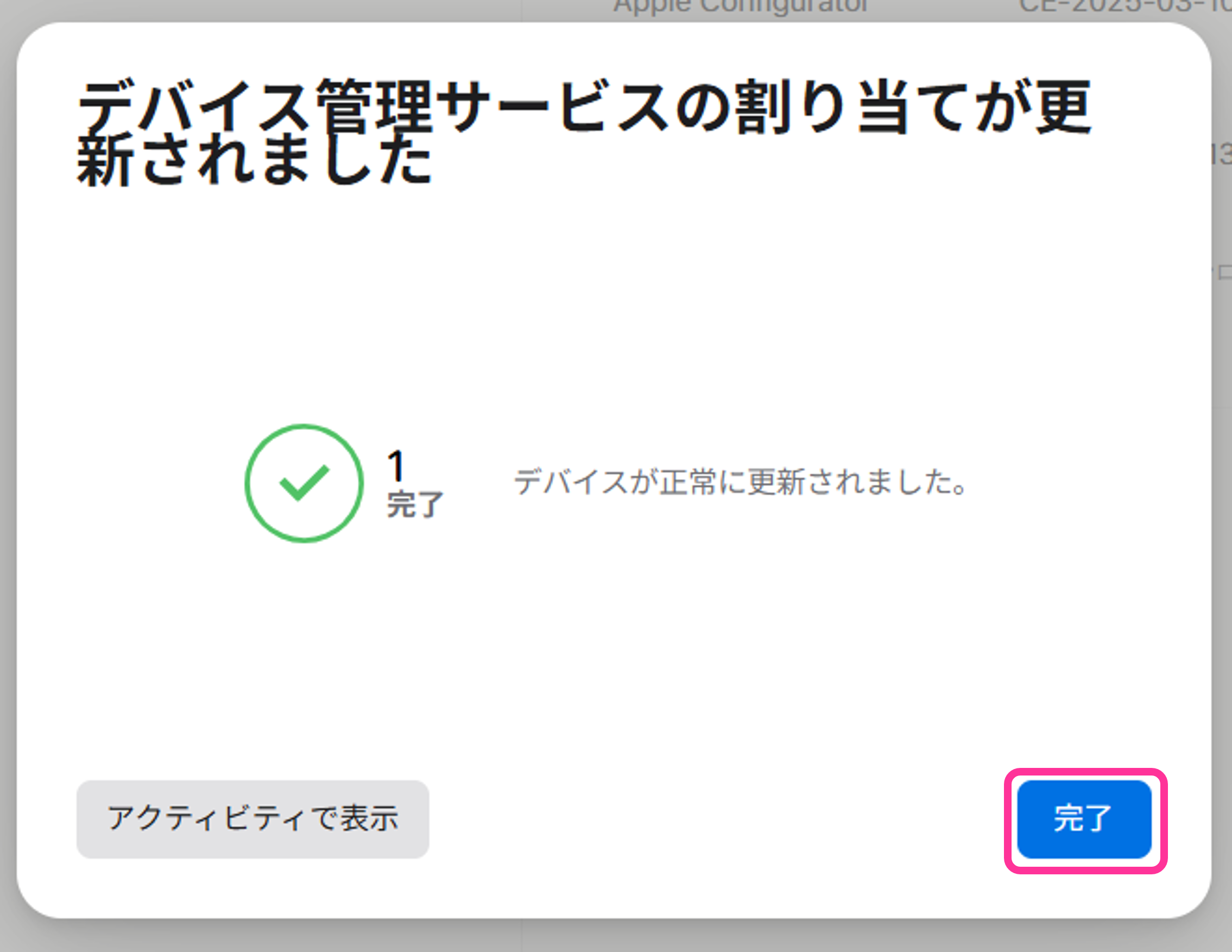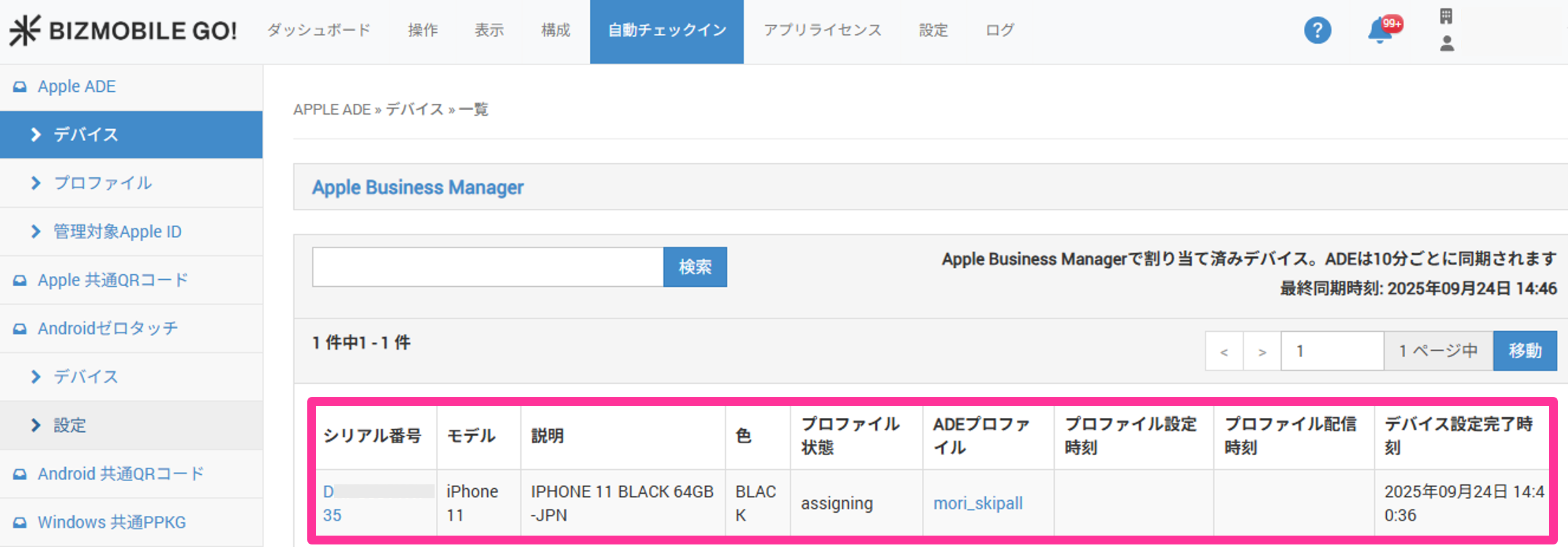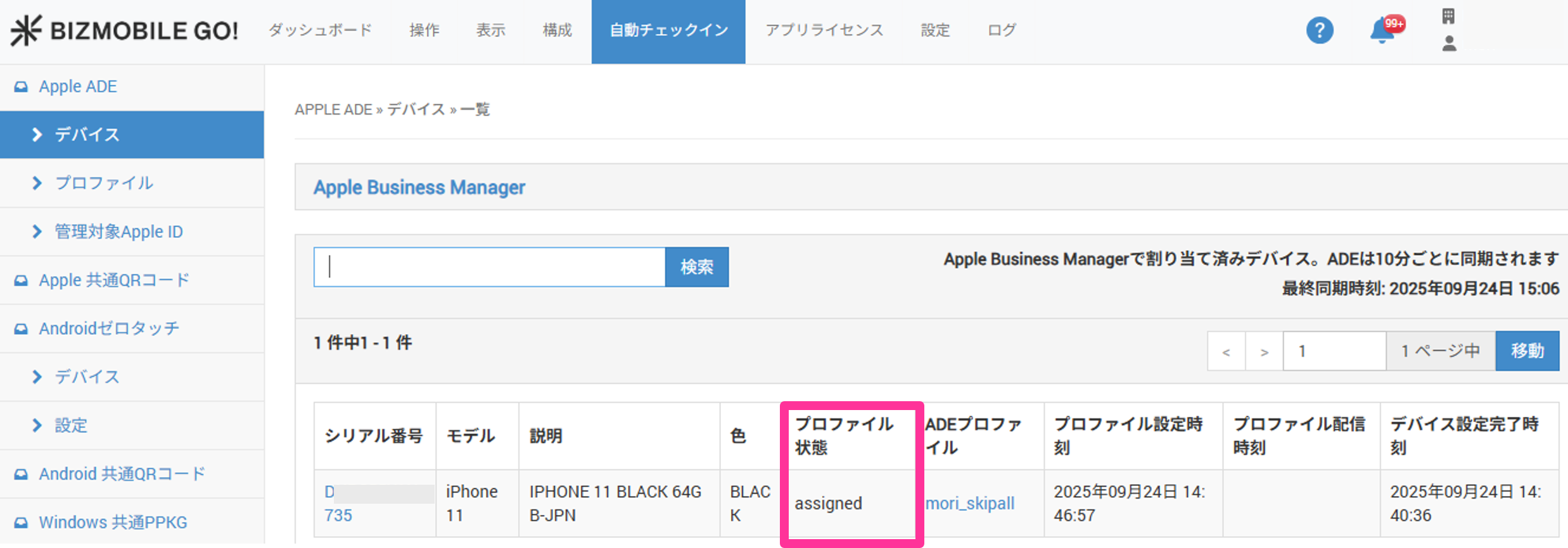 assigned:ADEデバイスへのADEプロファイル割り当てが完了