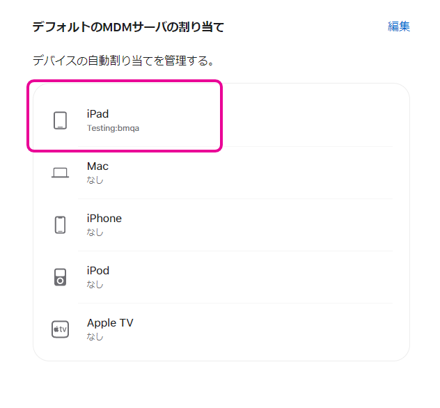 デバイスが表示されたらMDMサーバを編集をクリックし、割り当てを行います。