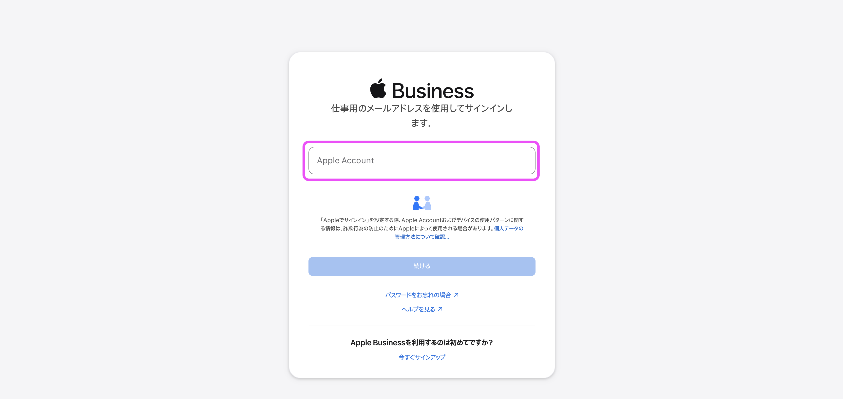 | 2. Apple Business (https://business.apple.com/login)にログインします。 | ![]() |