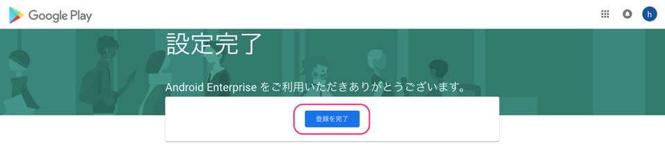 Managed Google Playアカウントで登録する手順は以上で完了です。
