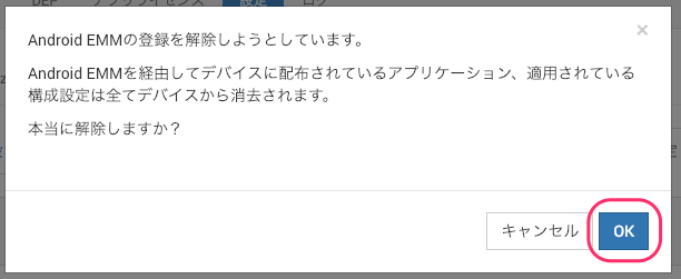 ※再登録するとEMM組織IDが新しく生成されるため、Google Playストアの限定公開アプリを使用している場合には、提供元へ新しいEMM組織IDを提供する必要があります。