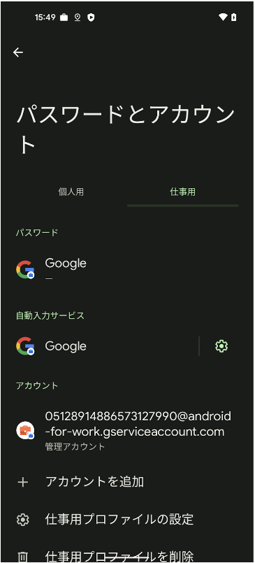 端末上での設定確認方法(Google アカウント(会社の旧G Suiteアカウントなど)でEMMを有効にした場合)