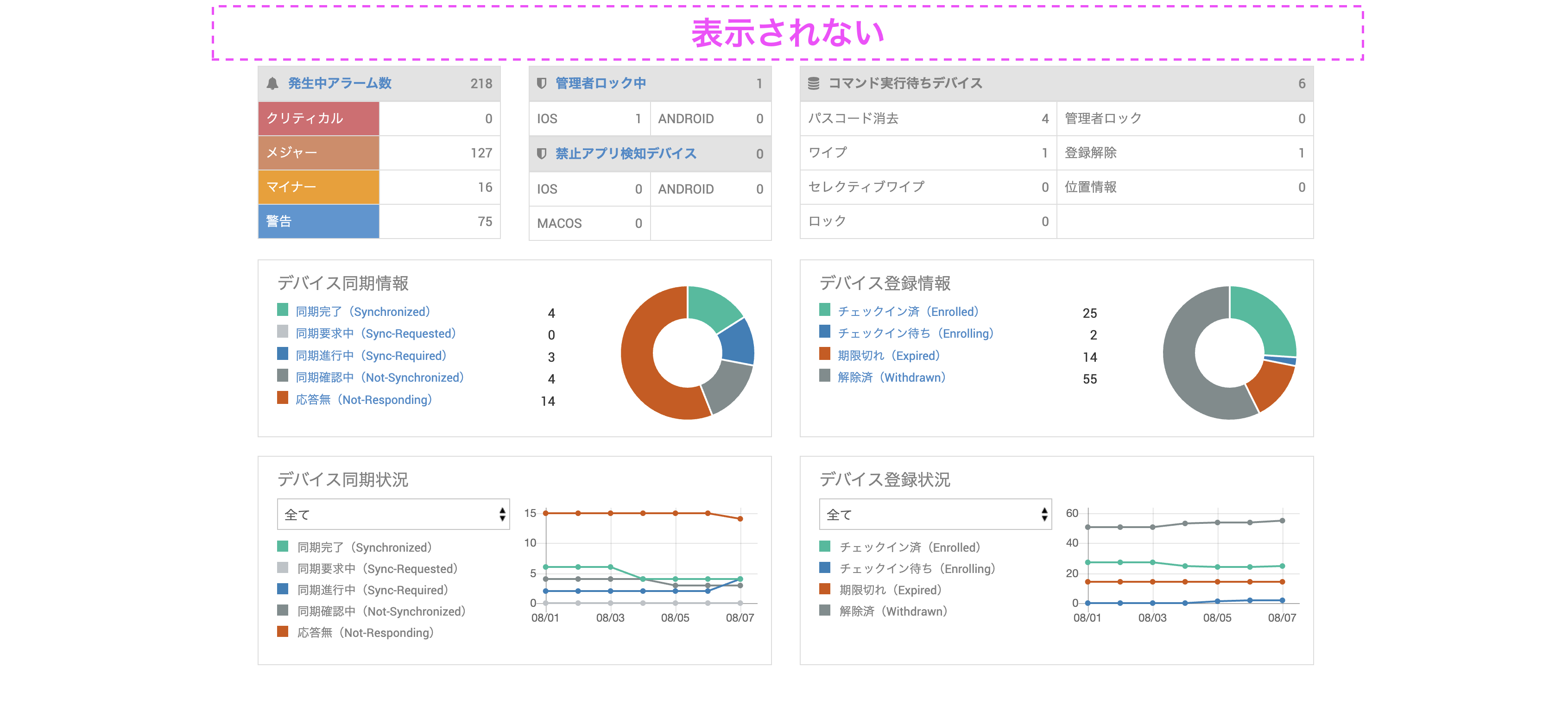 そのうちのBへのアクセスのみブロックされている場合、ダッシュボードは表示されますが画面上部のメニューバーが非表示の状態となります。