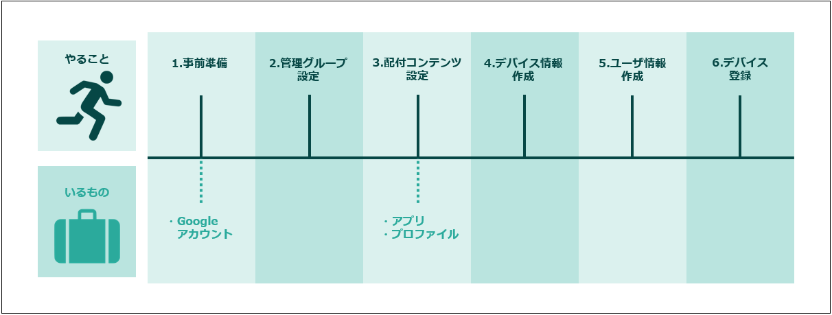 本ページでは、デバイス管理に共通する基本のステップと、デバイス単位個別認証での導入方法を順に説明しています。作業が必要となった部分のみ内容を確認することもできます。