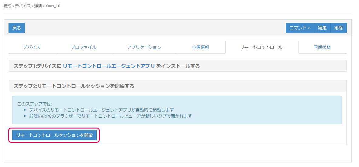 デバイスの設定が完了後、リモートコントロールを開始することができます。