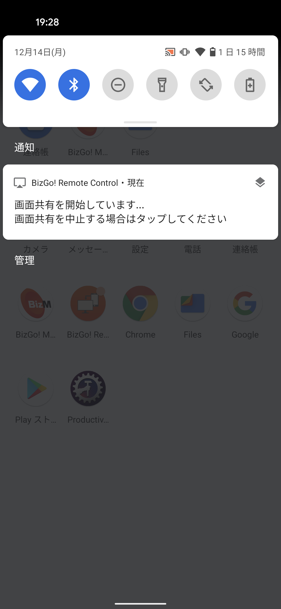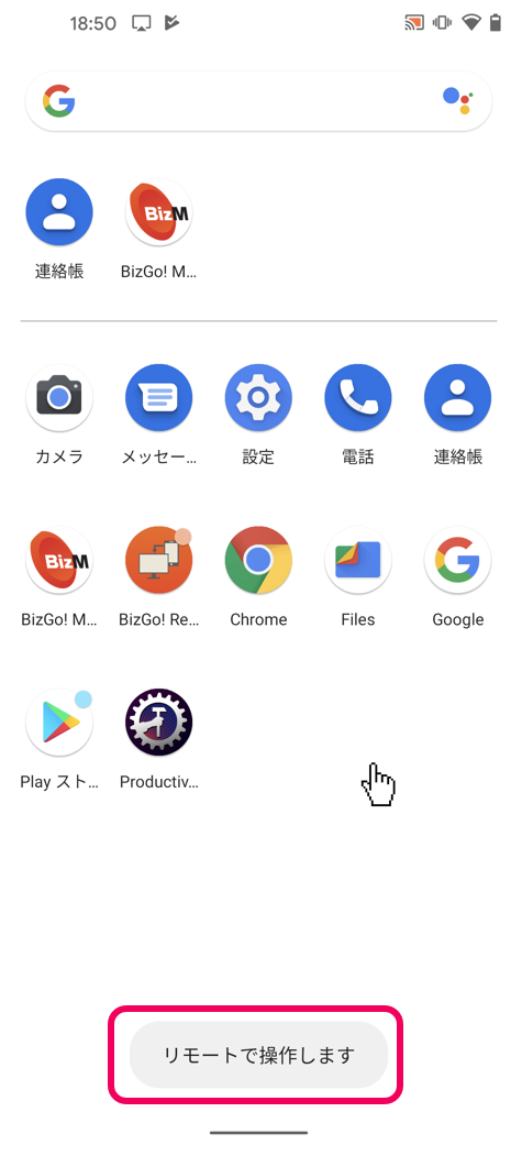 リモートコントロールとは、BizMobile Go!の管理画面から、管理中のAndroidデバイスの画面を閲覧、遠隔操作する機能となります。