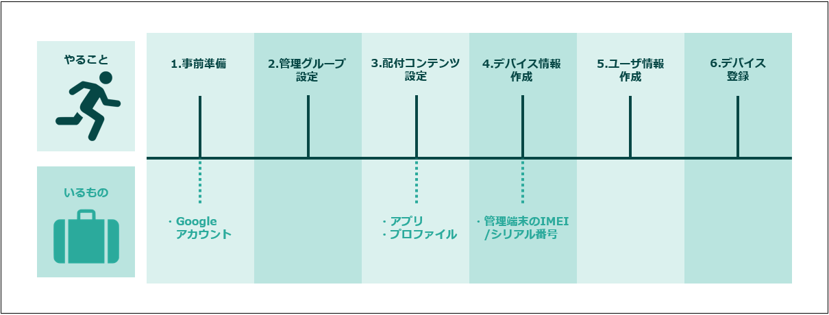本ページでは、デバイス管理に共通する基本のステップと、ゼロタッチでの導入方法を順に説明しています。作業が必要となった部分のみ内容を確認することもできます。
