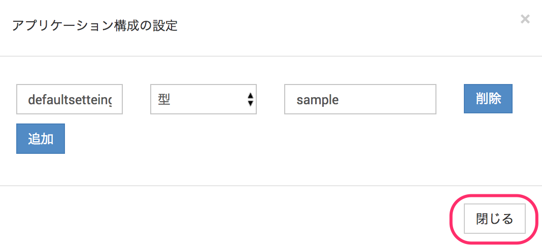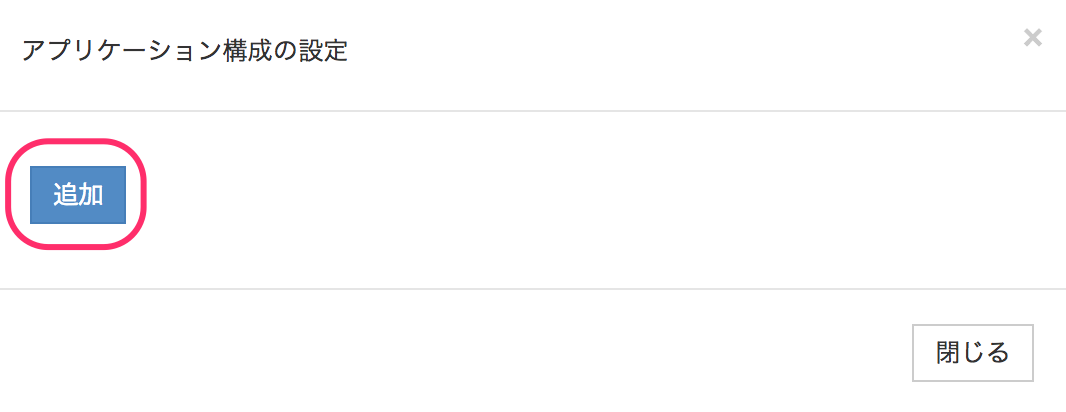 3. アプリケーション構成の設定画面にて、[追加]をクリックします。