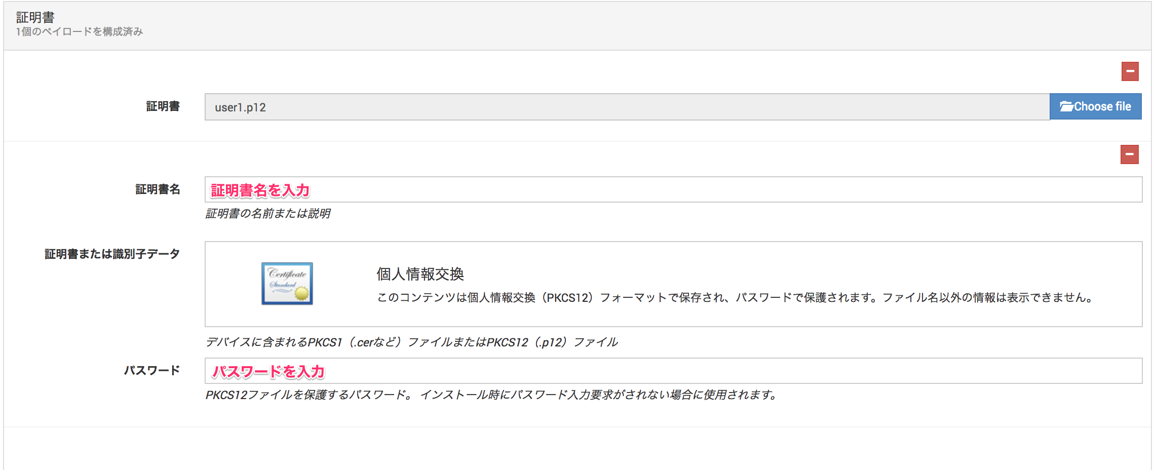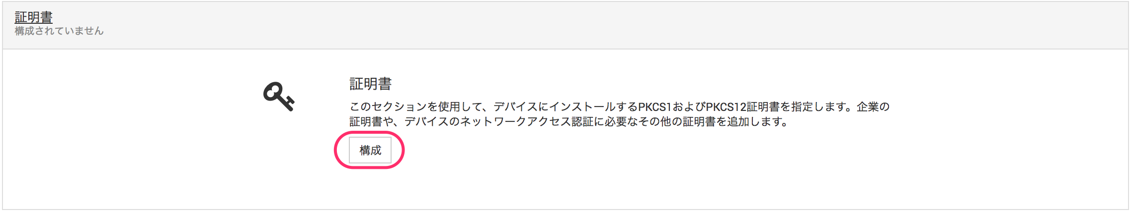 1. 証明書ペイロードの[構成]をクリックします。