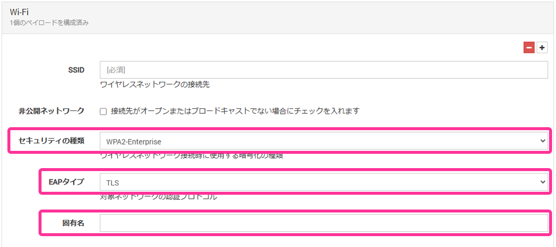 1. Wi-Fiペイロードの[構成]をクリックします。