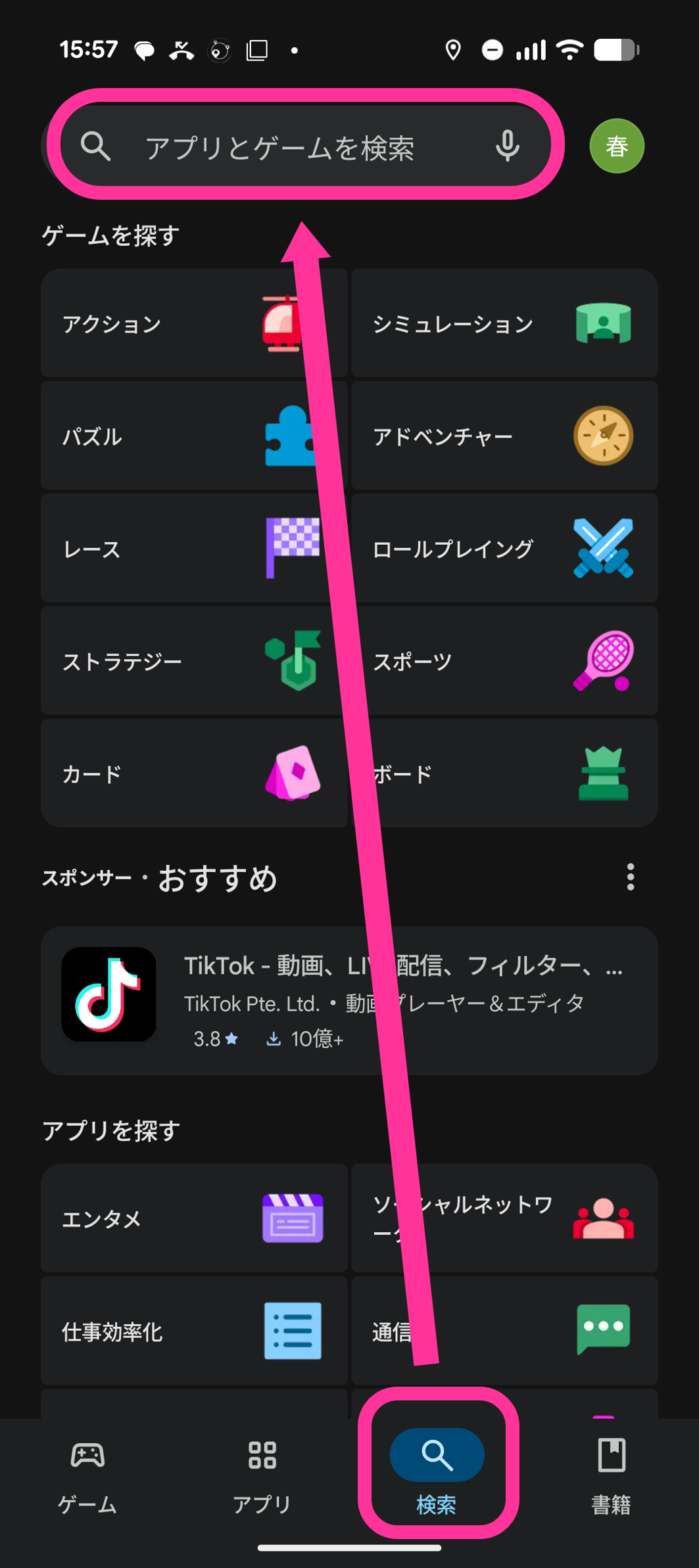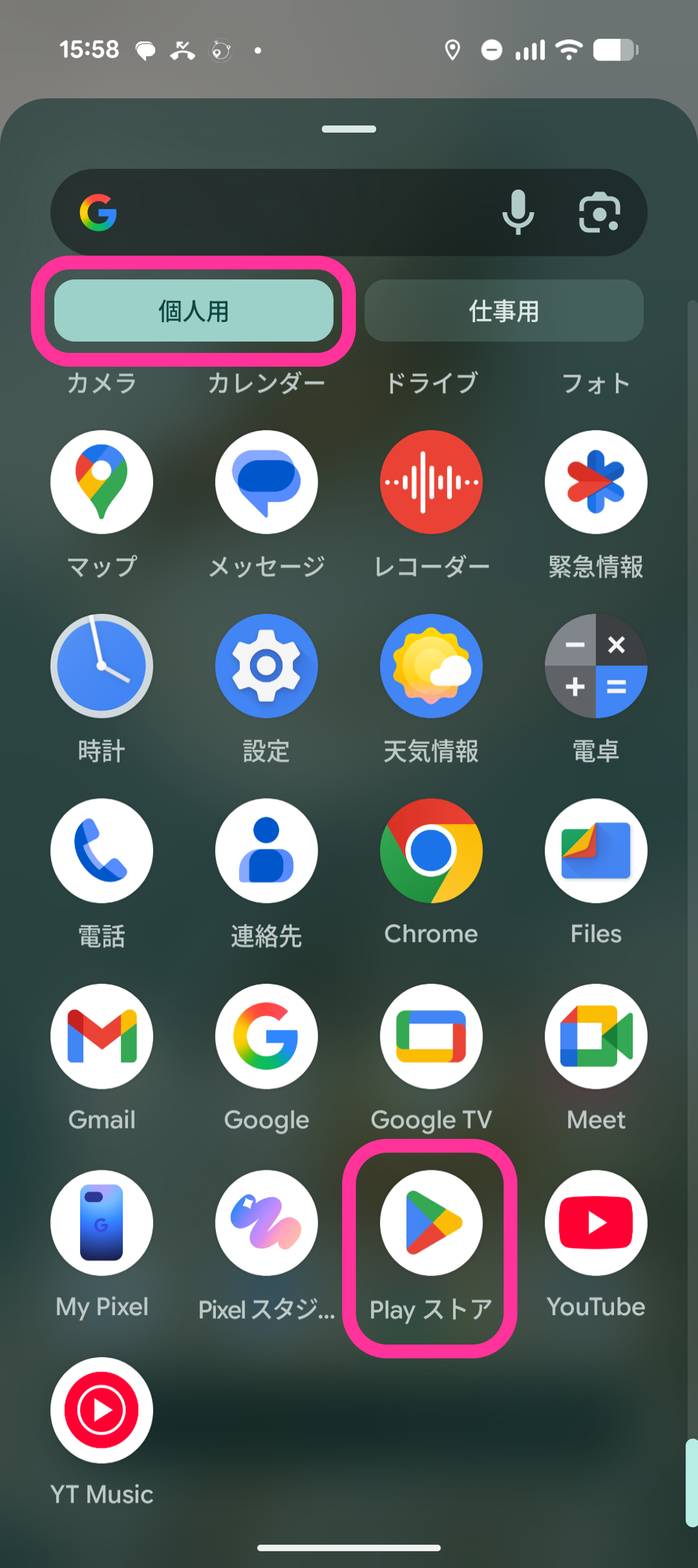 1. 個人領域の「Playストア」アプリをタップします。