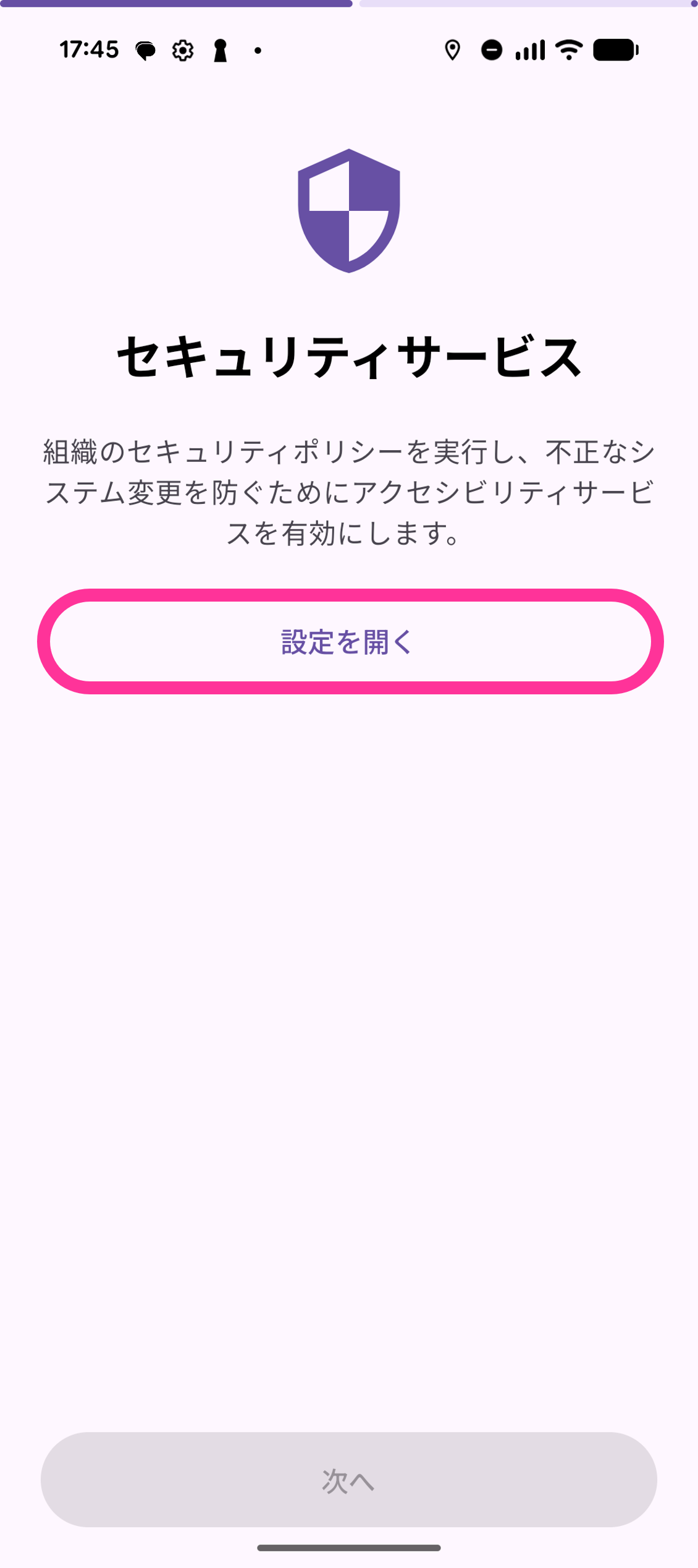 6. 「セキュリティサービス」の画面で「設定を開く」をタップします。