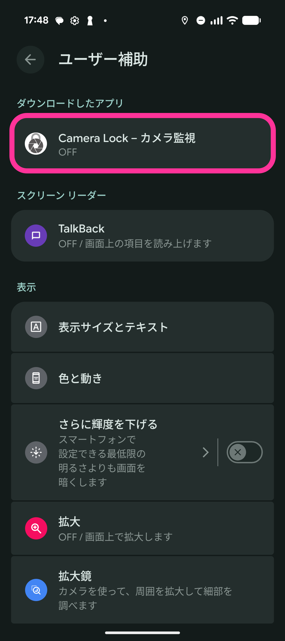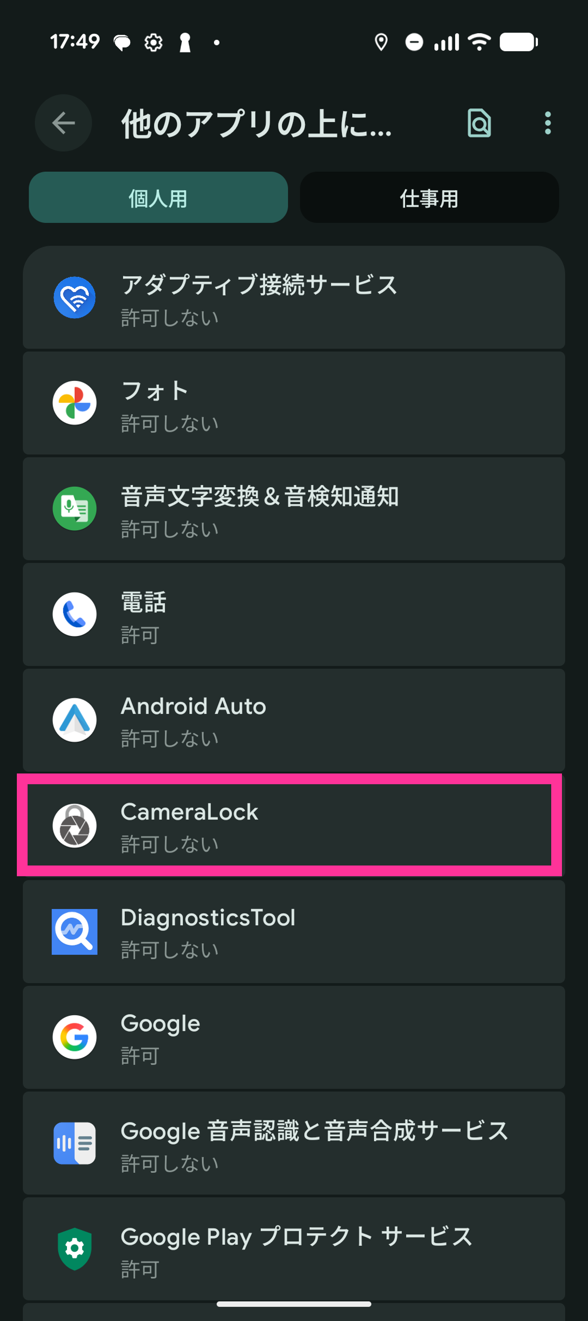 13. 「CameraLock」をタップします。