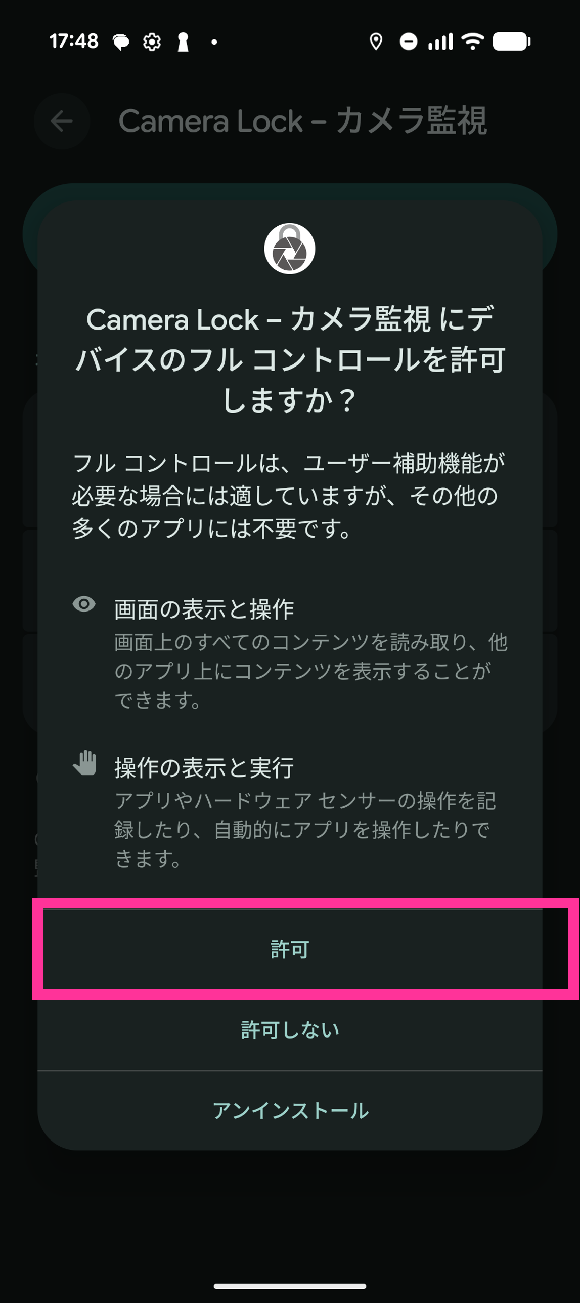 9. フルコントロールの許可を確認するポップアップが表示されますので「許可」をタップします。