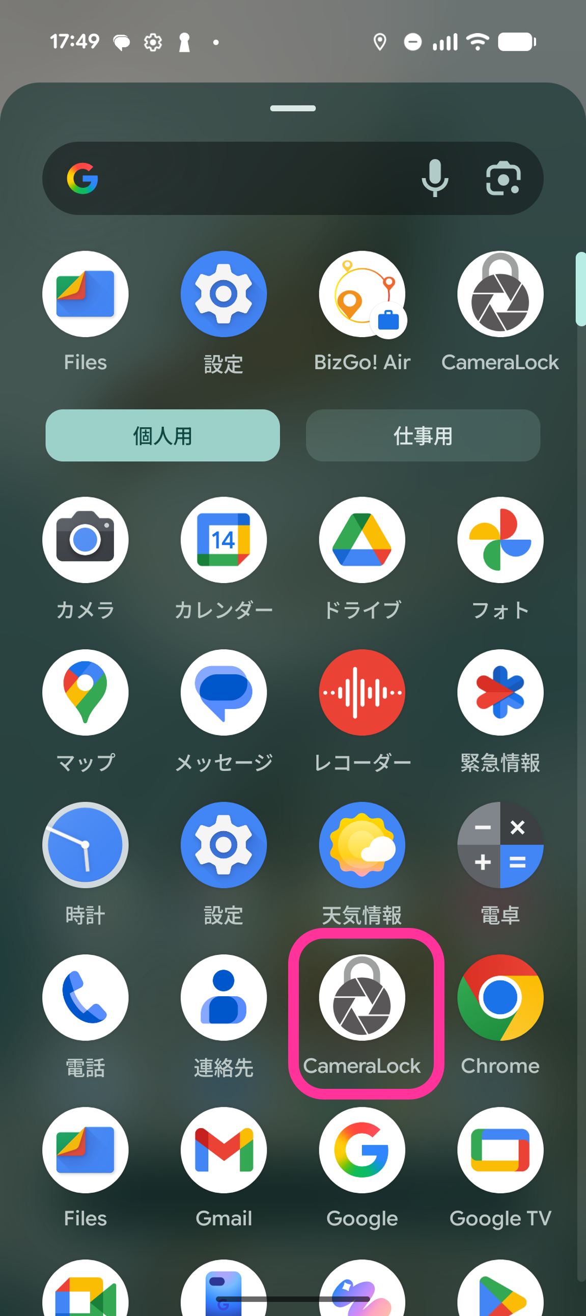 15. 「BizGo! CameraLock」アプリをタップします。