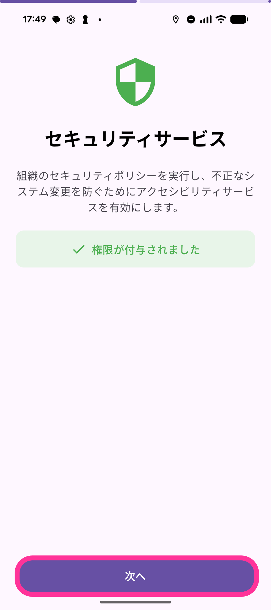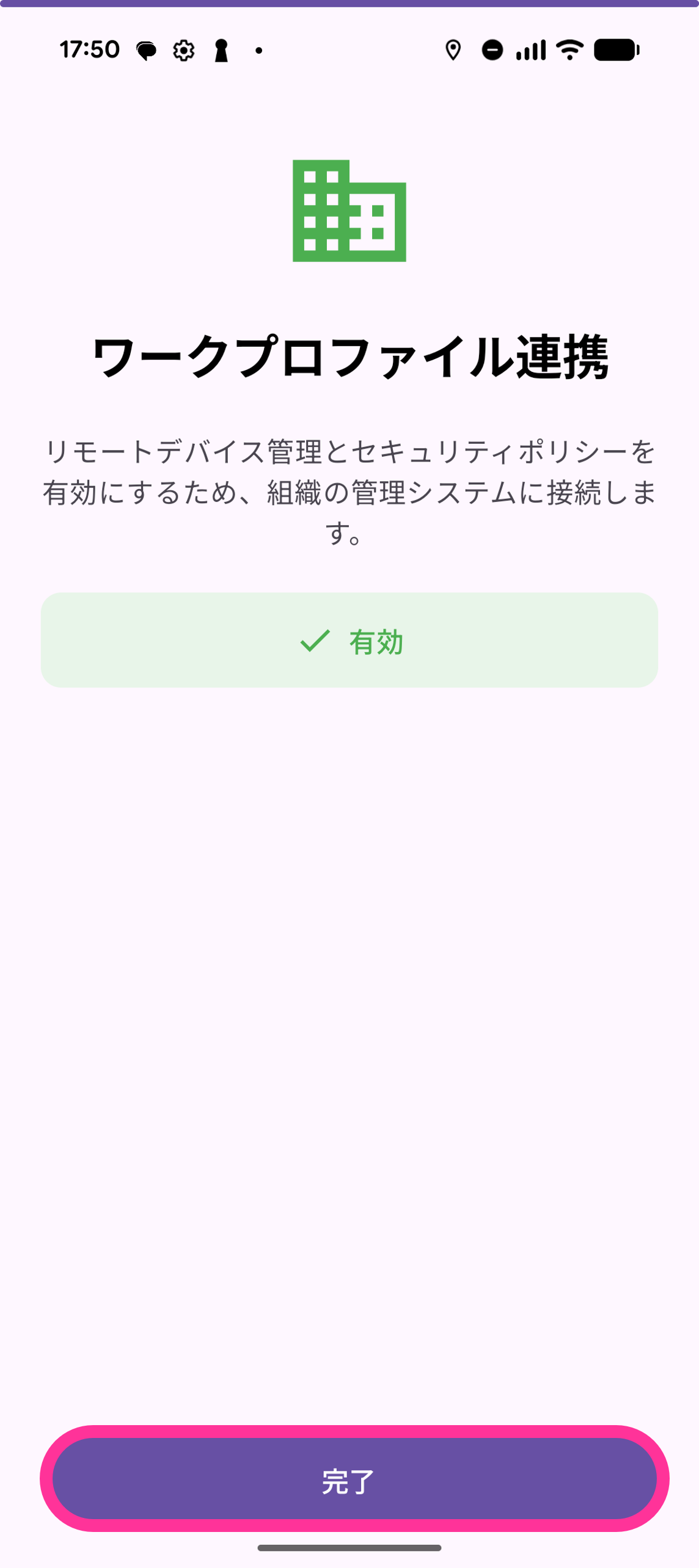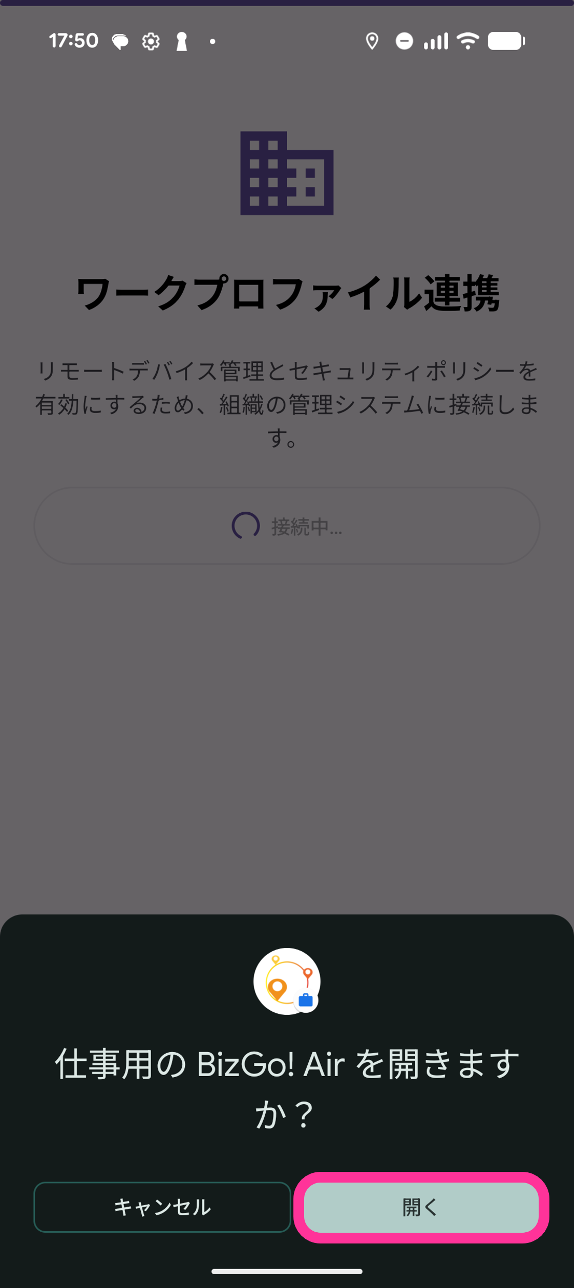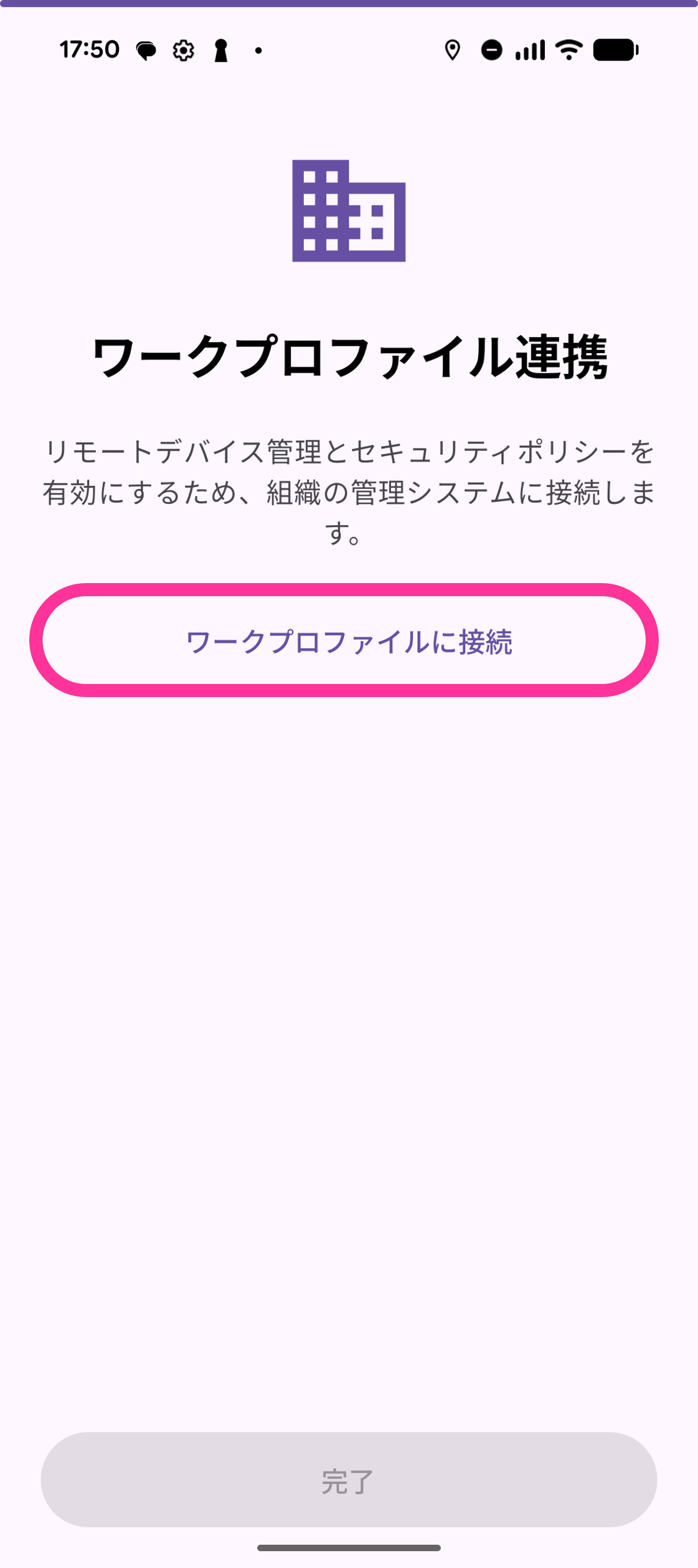 17. 「ワークプロファイル連携」画面で「ワークプロファイルに接続」をタップします。