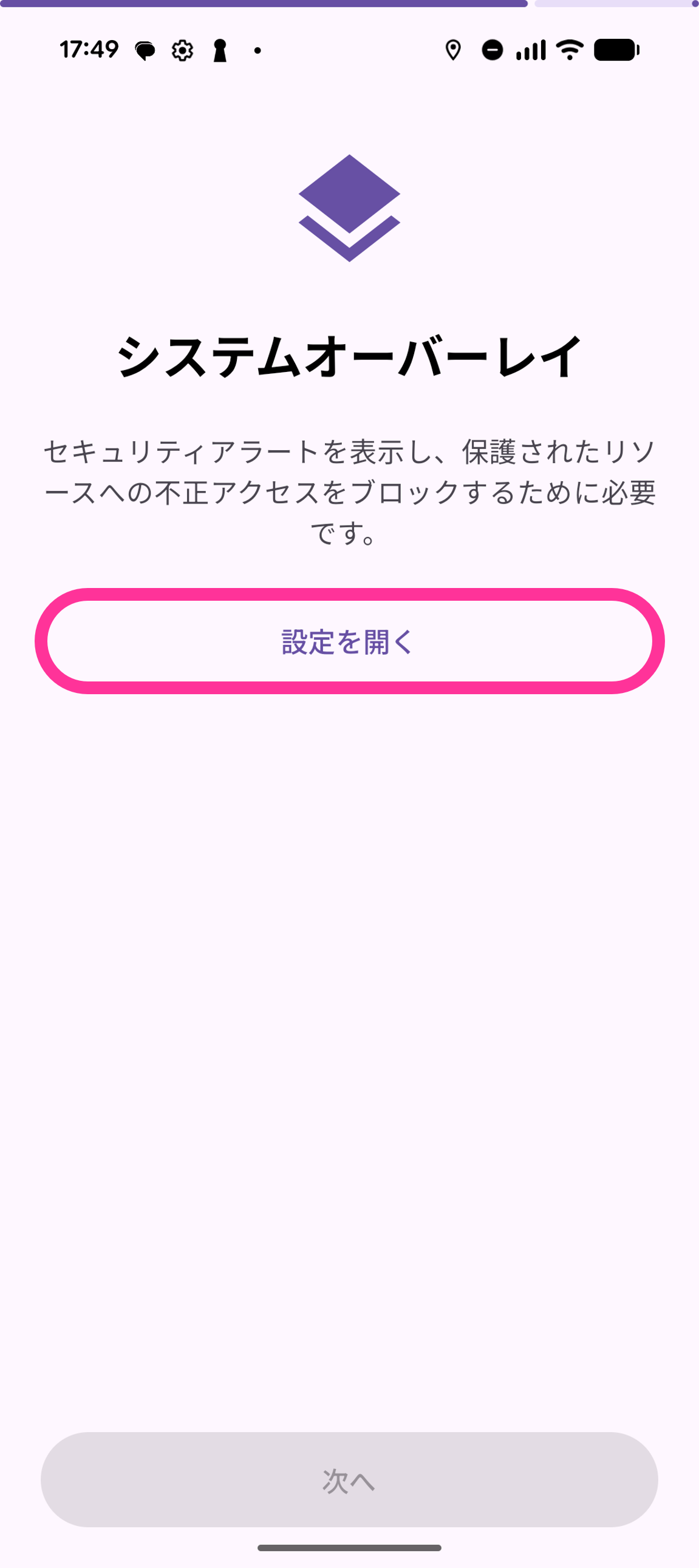 12. 「システムオーバーレイ」の画面で「設定を開く」をタップします。