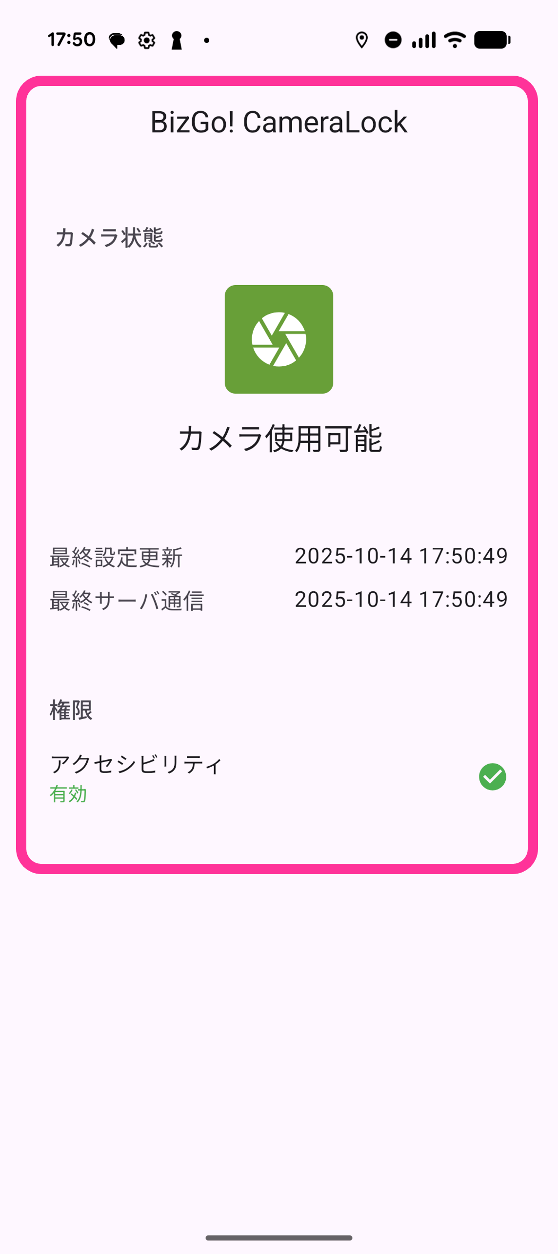 20. BizGo! CameraLockの画面が表示されればセットアップは完了です。