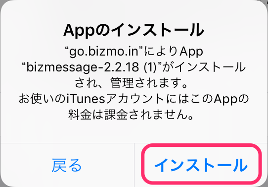 1. デバイス管理者によりアプリケーションのインストールが指定されている場合、Appのインストールメッセージが表示される場合がありますので、[インストール]をタップしてください。