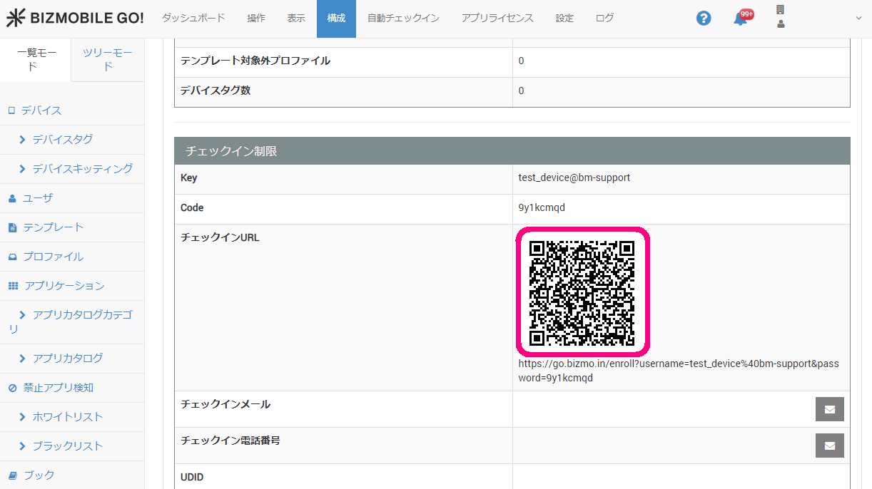 チェックインが完了するとBizMobile Go! への登録が完了となり、あらかじめデバイスと同じテンプレートに登録されたプロファイルやアプリなどがデバイスへ配付されキッティングまで自動的に完了します。