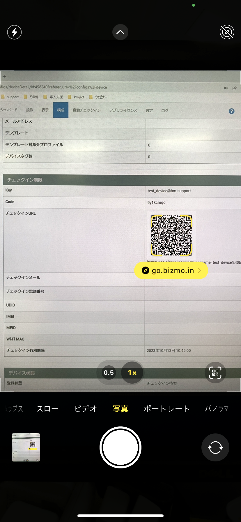 1. デバイスのカメラを起動し、QRコードを読み込みます。