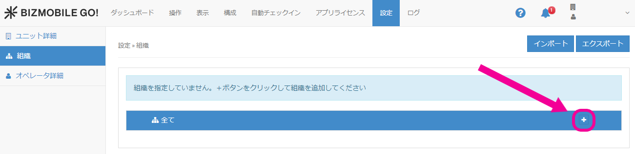 1. 【設定】→【組織】をクリックします。