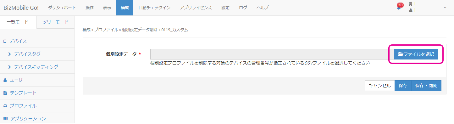 CSVファイルアップロードによって、作成済みカスタムプロファイルに割り当てられたデバイスから、指定したデバイスのみの割り当て解除を一括で行うことができます。