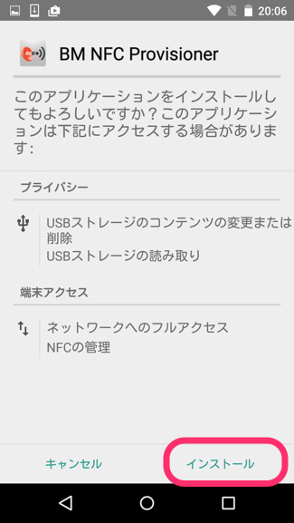 これでNFC Provisionerアプリのインストールは完了です。