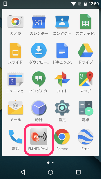 1. NFC Provisionerアプリのアイコンをタップして、アプリを起動します。