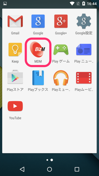 BizMobile Go!のMDMエージェントアプリをタップして起動しチェックイン作業へ進みます。