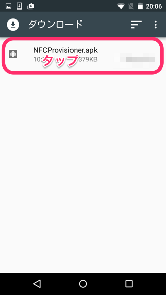 2. ※ NFC Provisionerアプリのapkファイルはコチラからダウンロードしてください。