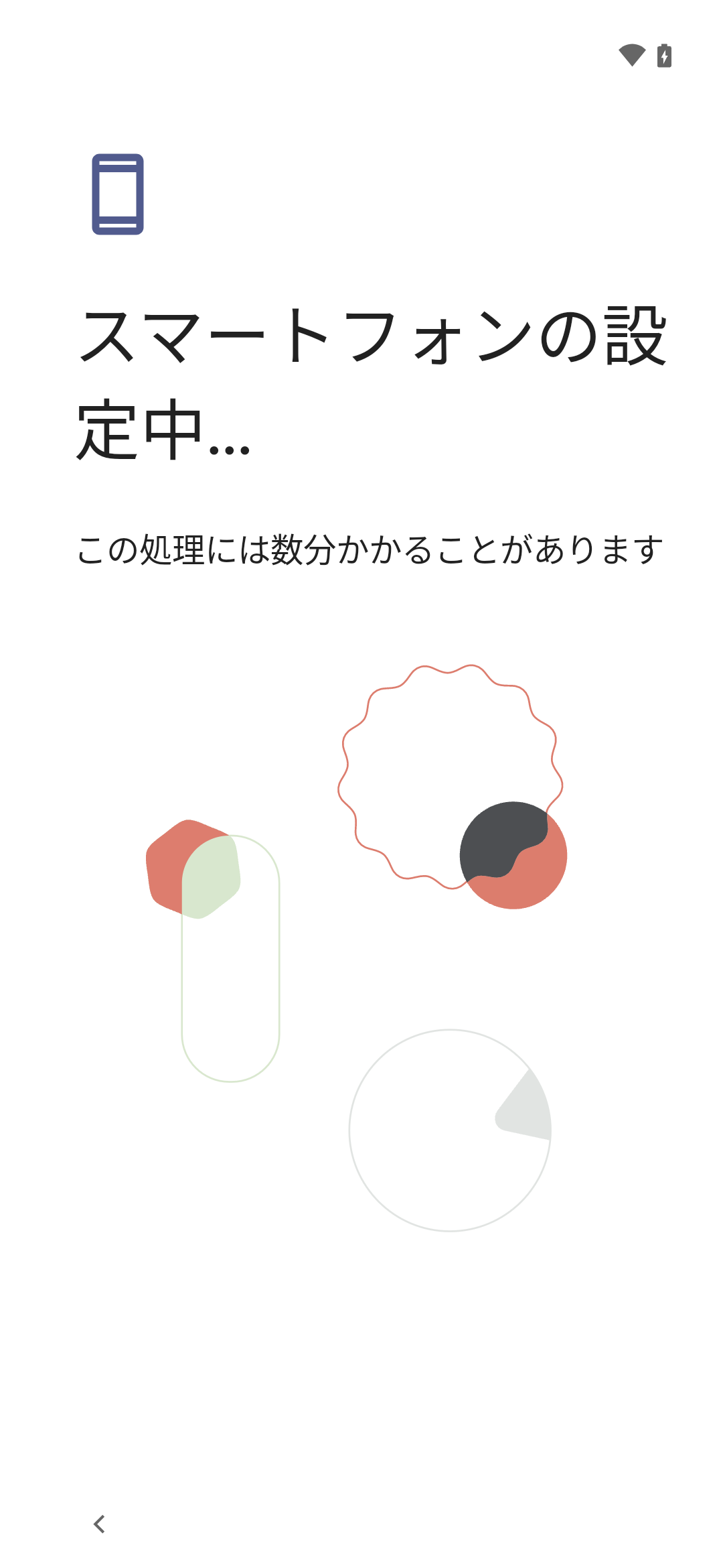 1. ネットワークへ接続されると、スマートフォンの設定が開始されます。