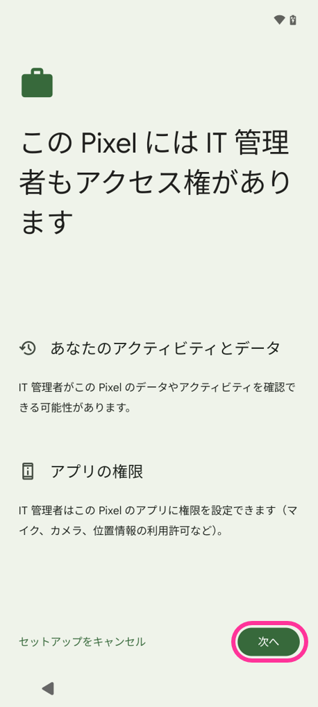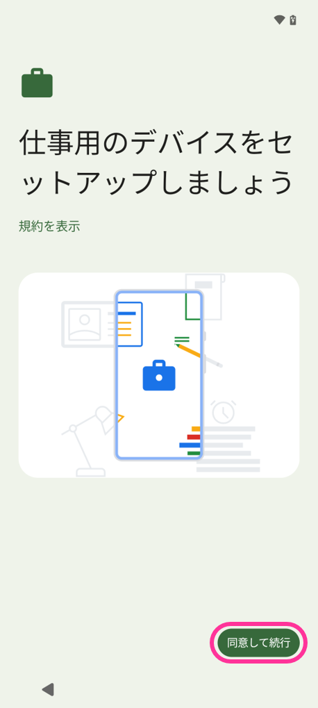 1. 仕事用デバイスのセットアップが始まります。