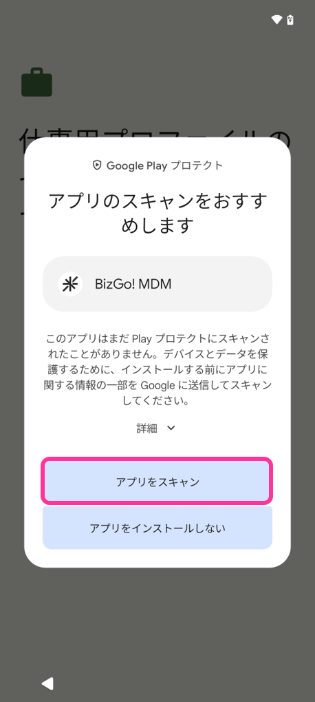 その場合には、BizMobile IDを利用したデバイスオーナーモードの設定等、別の方法を利用し、デバイスオーナーモードを設定ください。