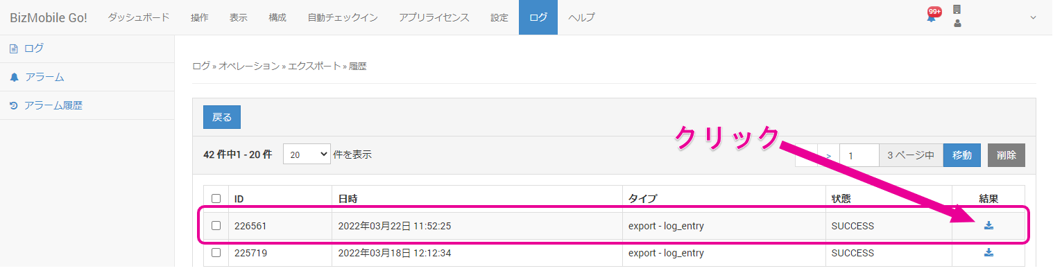 アイコンをクリックすると、CSVファイルがダウンロードできます。