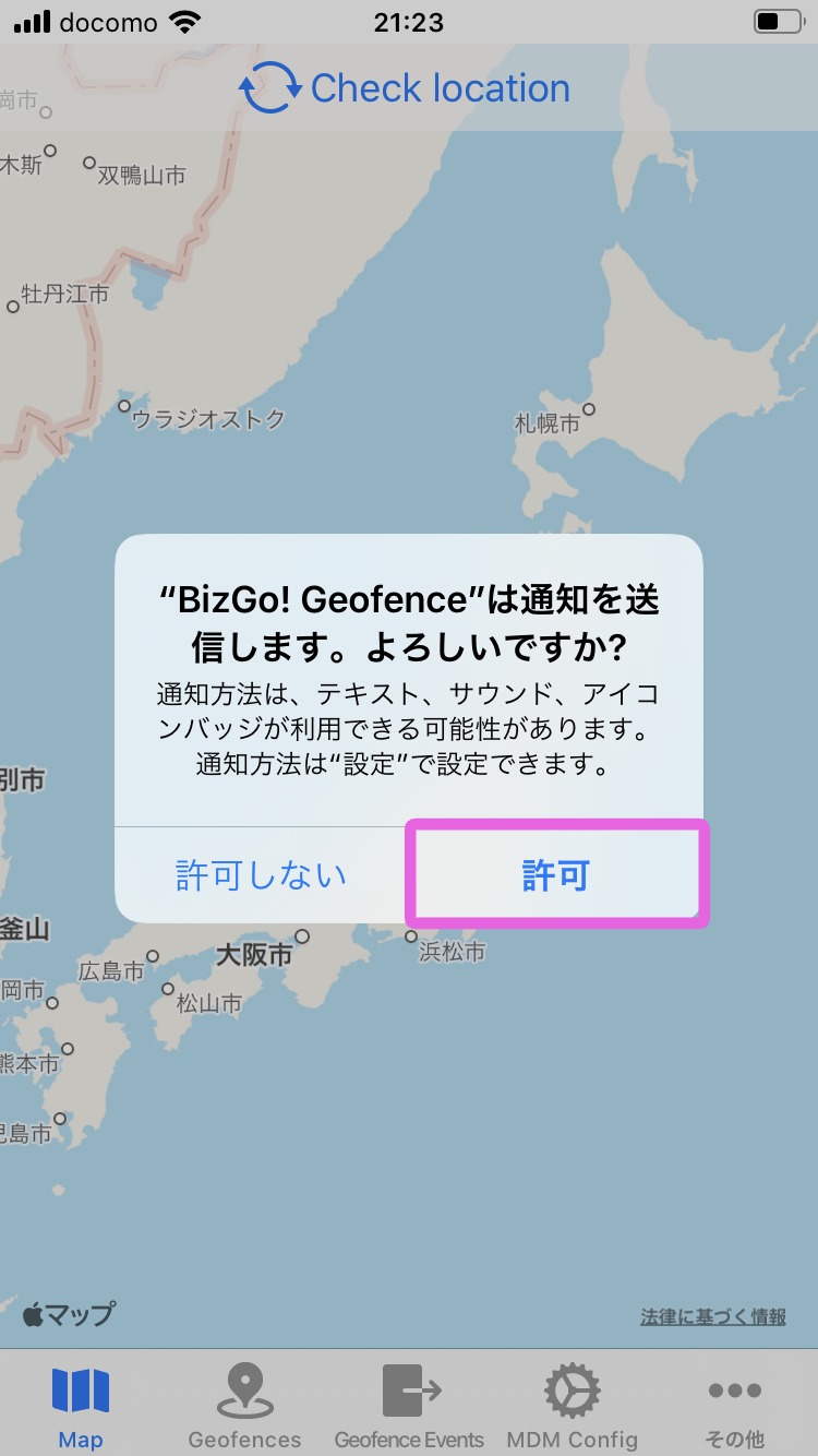 BizGo!Geofenceアプリの使用方法