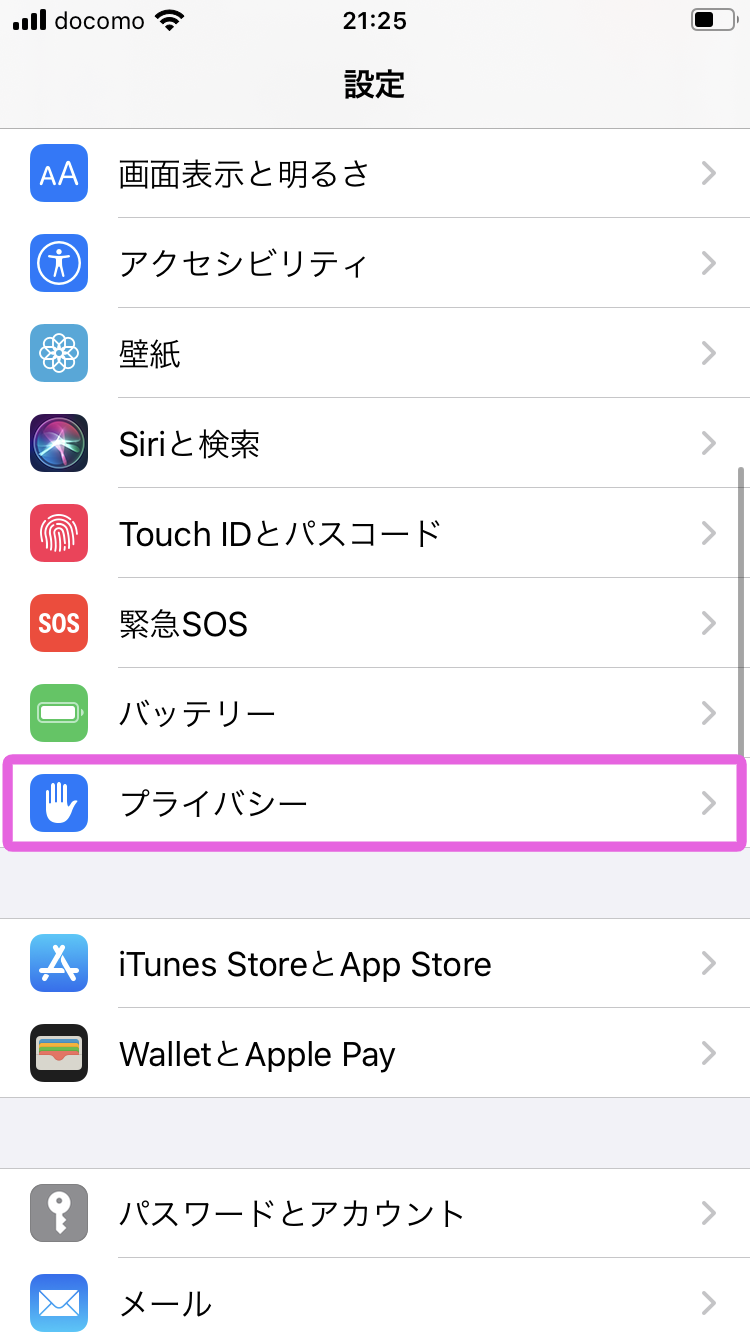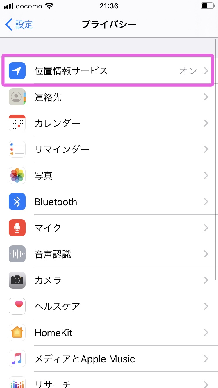 1. [プライバシー]→[位置情報サービス]をタップします