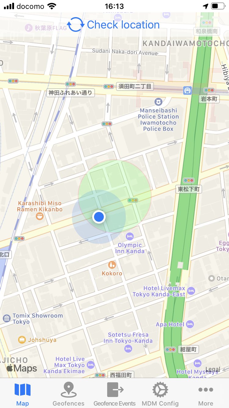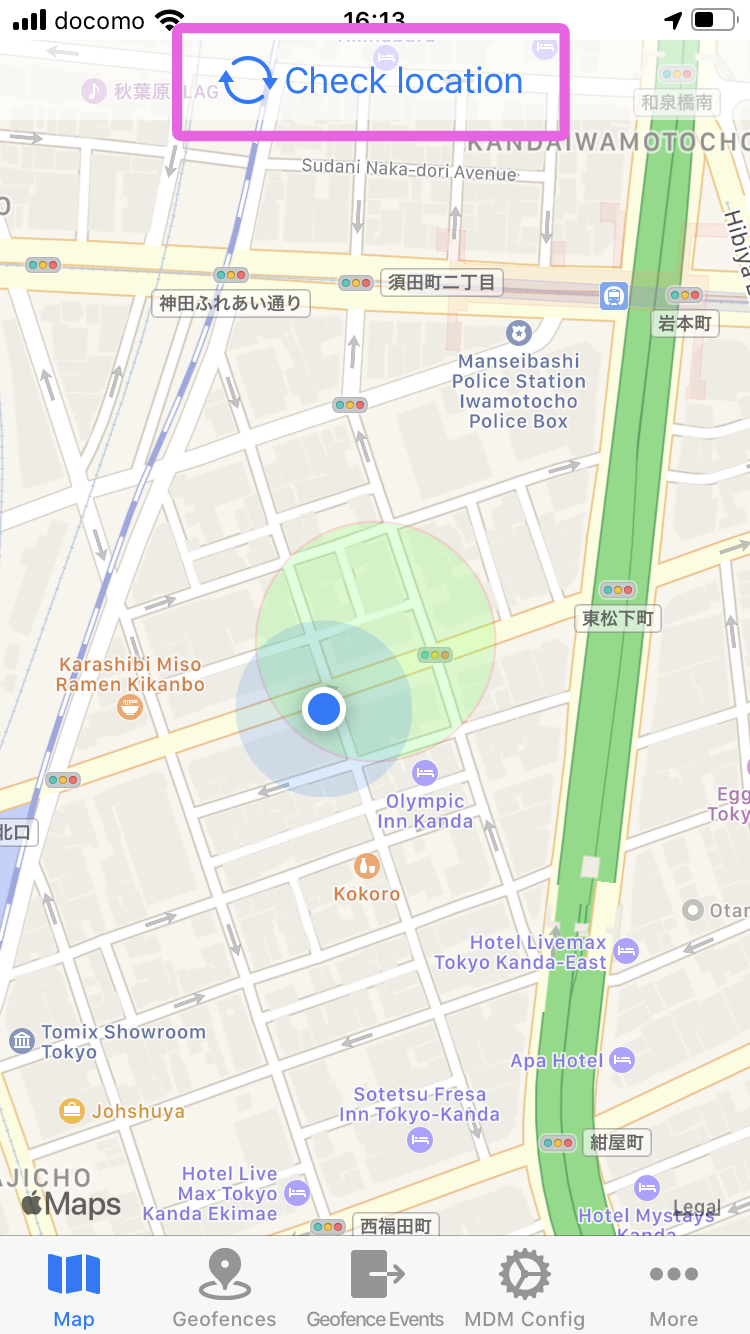 1. 「Check location」ボタンをタップします。