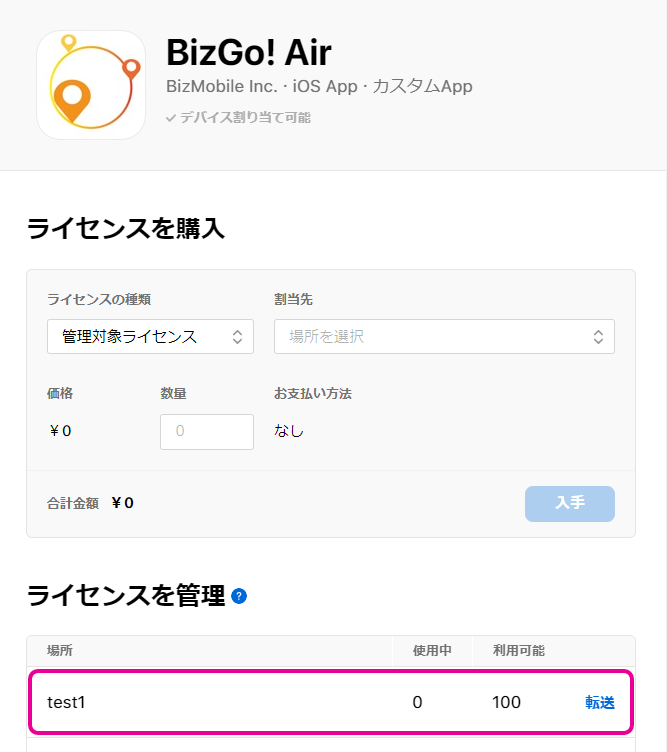 [ジオフェンスv2] (iOS / iPad OS) BizGo! Airアプリを配付する