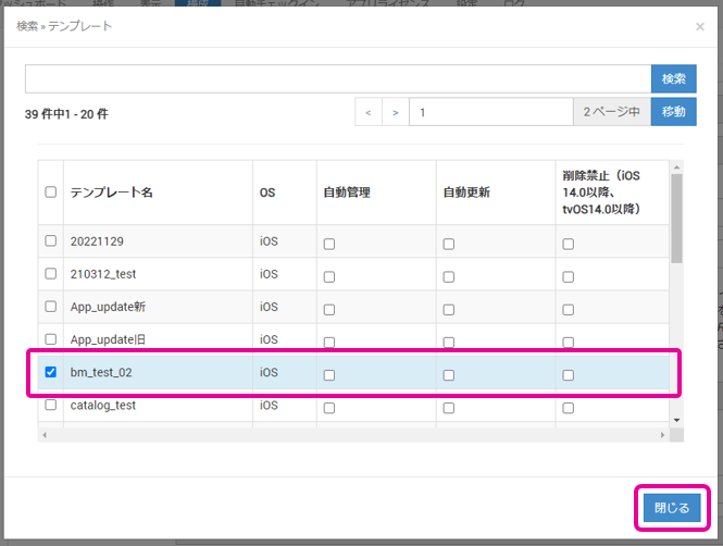 テンプレートのを押してアプリを割り当てたいテンプレートを検索します。