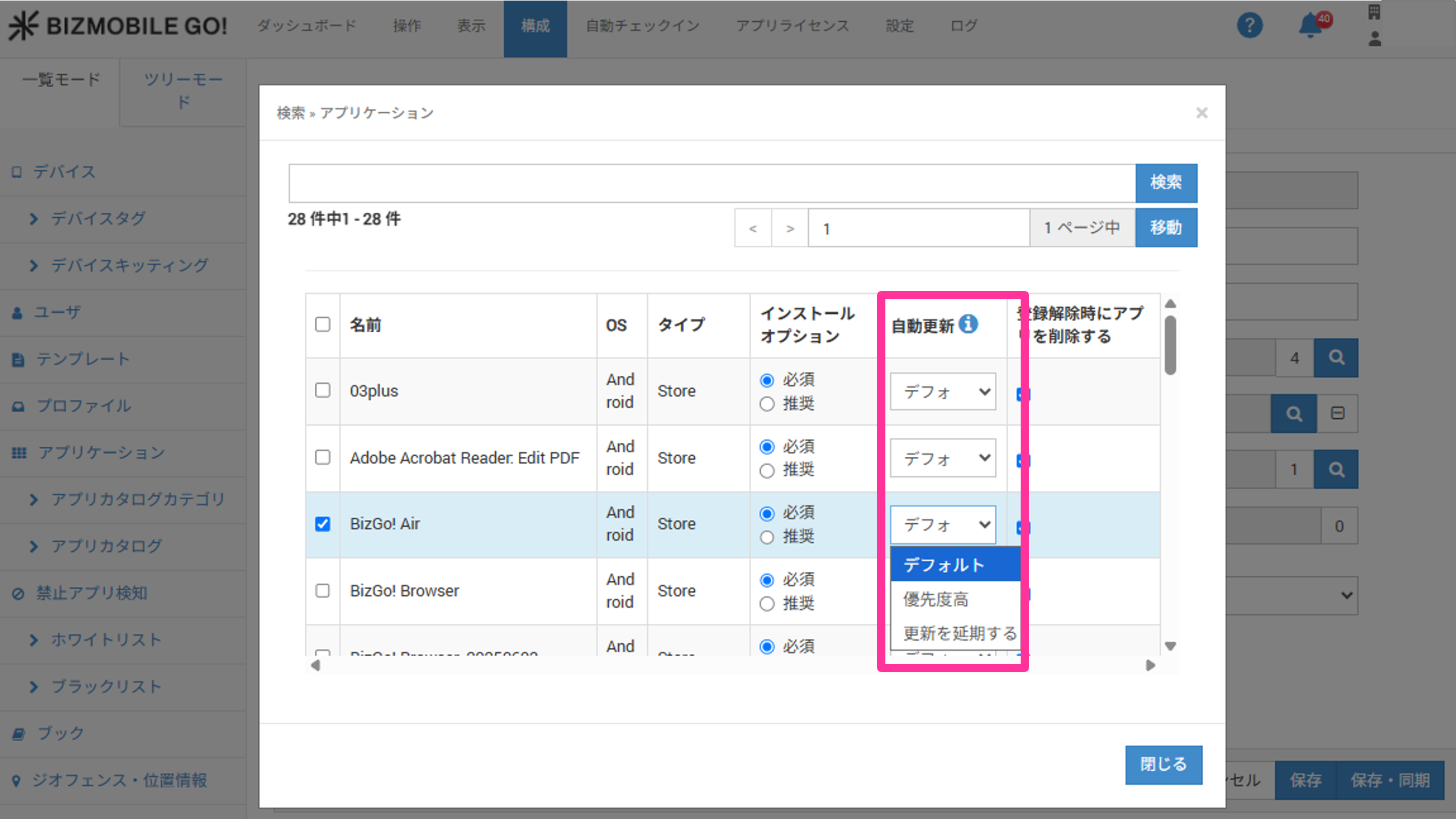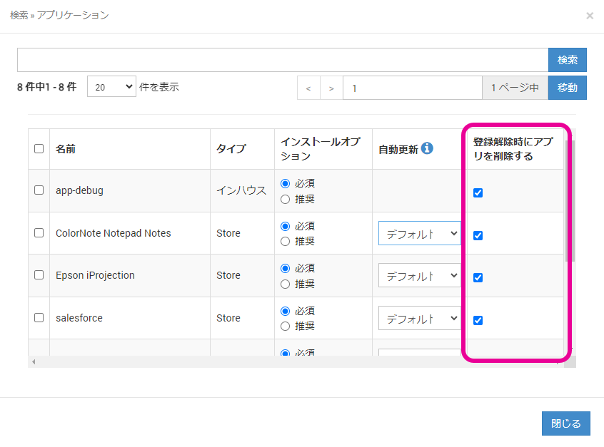 デバイスを登録解除した際、MDMから配付したアプリを削除するか、もしくはそのまま残すかを設定することができます。