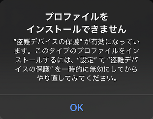 iOS/iPadOS 17.3 固有の動作として、盗難デバイスの保護機能がONとなっている場合は、MDMプロファイルのインストールがブロックされます。