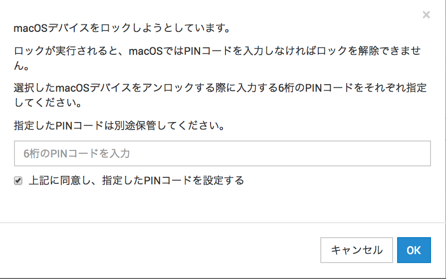 - 管理デバイス上でロックを解除する際に必要となる6桁のPINコードを入力し、