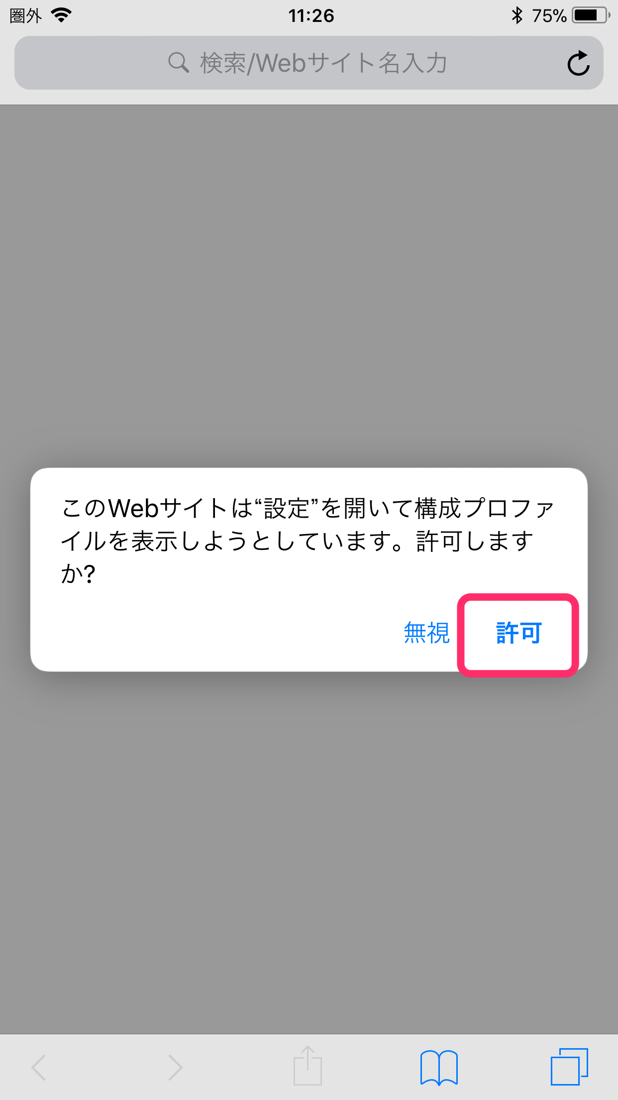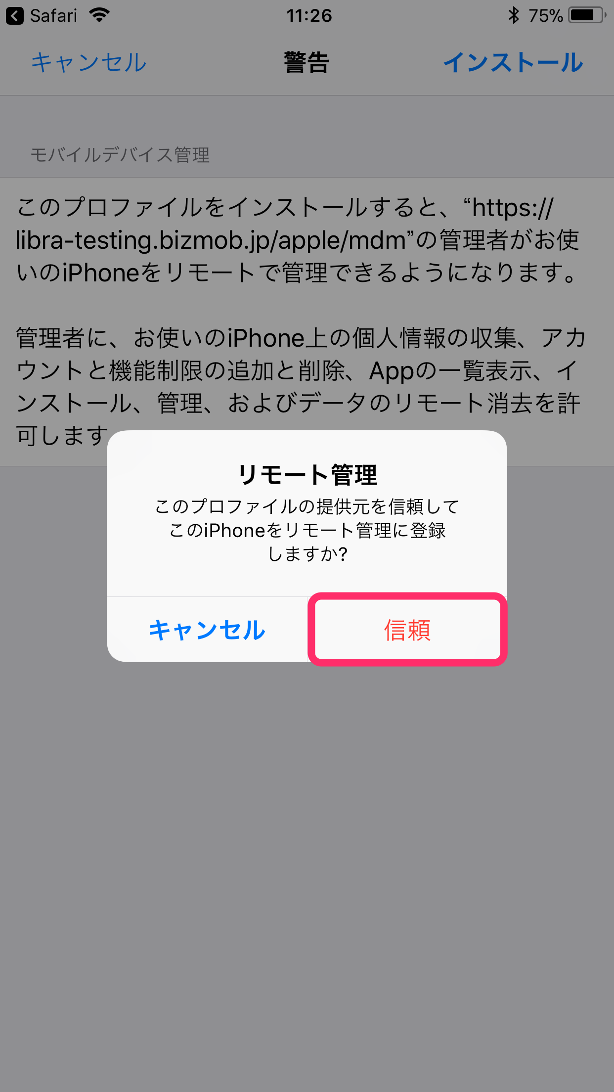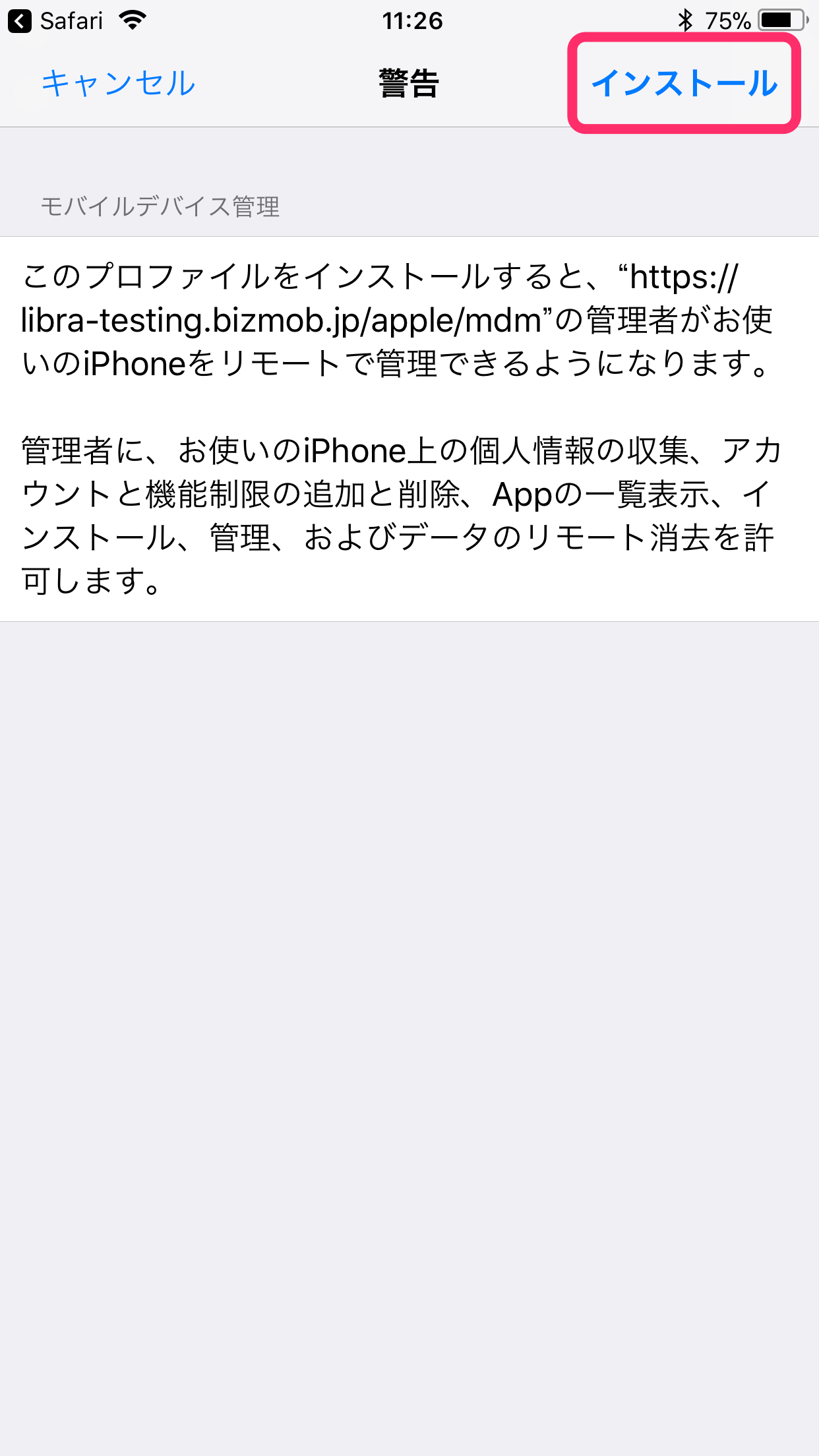 MDMプロファイル更新には、管理デバイス上操作にて、特定のURLを開く必要があります。