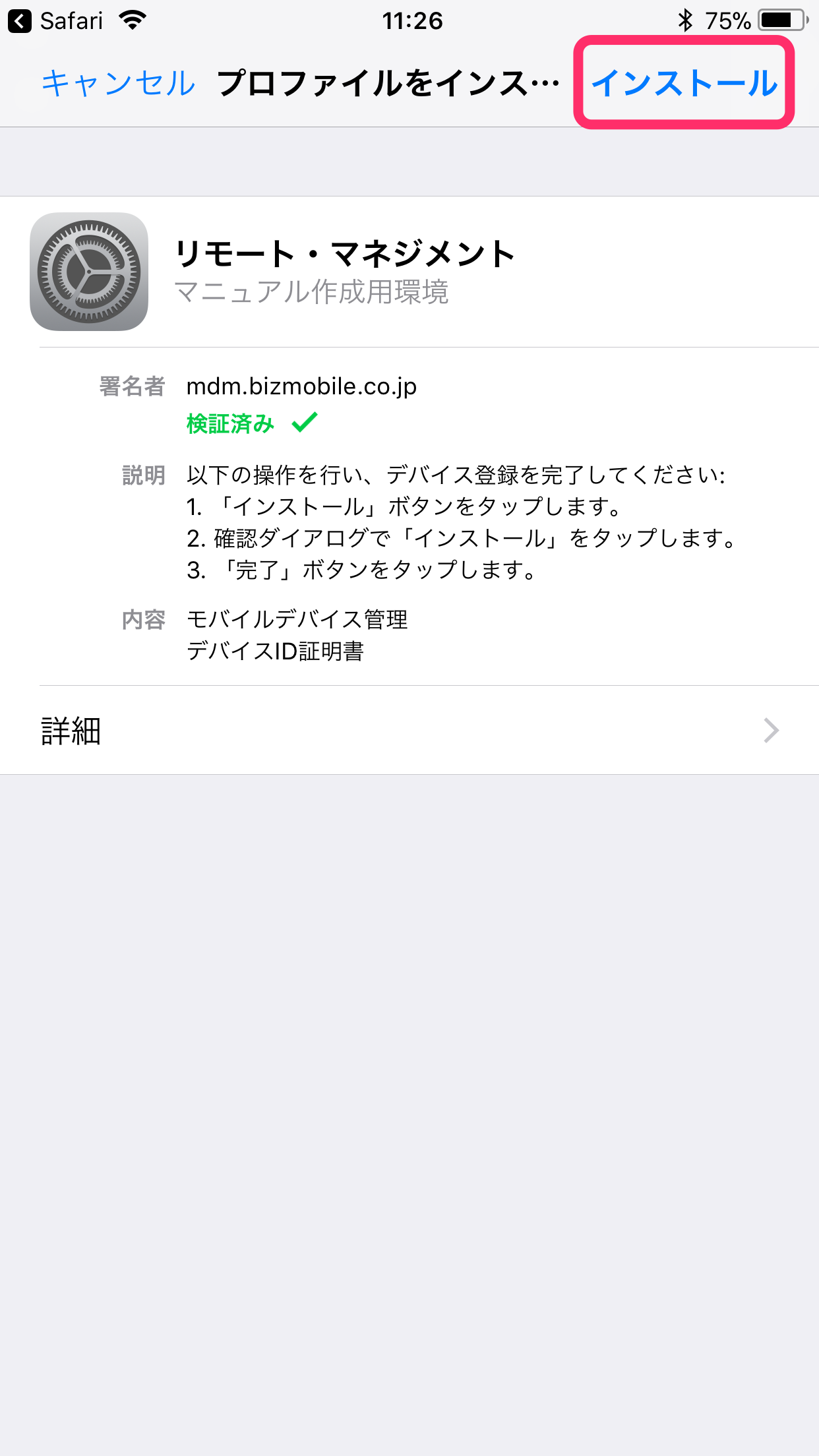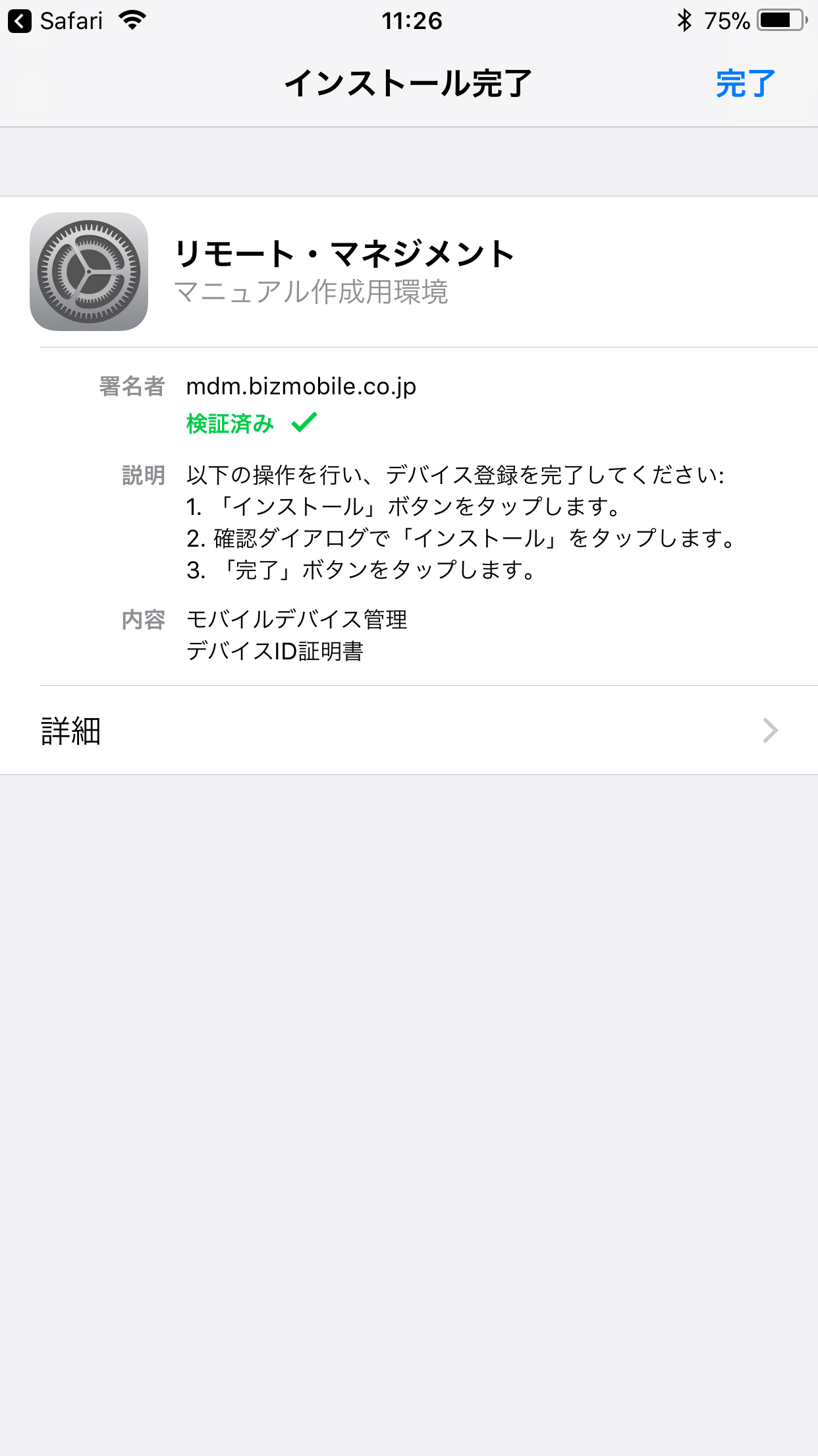 未署名の表示のままでも、BizMobile Go! によるデバイス管理への影響はありません。
