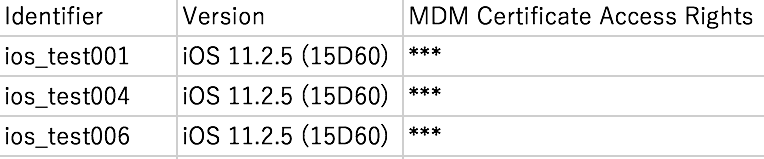 6. ダウンロードしたCSVファイルには、MDMプロファイル未更新のデバイスのみ出力されます。